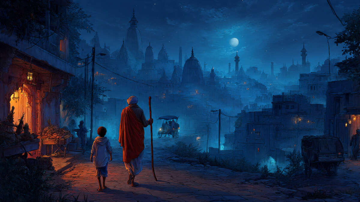 The old man suddenly stopped at a point to examine something he found lying on the ground. Whatever it was, he picked it up, examined it by bringing it closer to his eyes, and threw it away when he got sure of its worthlessness. A little further, he stopped once more to buy a couple of buns from a small shop, which he deposited into his cloth bag.