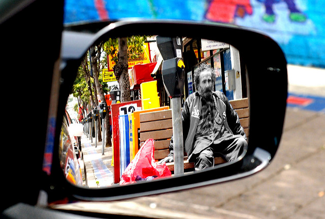 He is waiting for an existent. Any recognition in his eyes is reserved for that moment. His “thank you” is more because he has a kind heart, and he knows that you will be happy if he accepts your gift. He is waiting for something or someone, but you are not it.